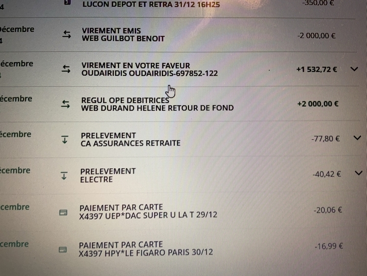 Initialement elle m annonce que le document devait émaner de chez eux sans en être sur. En dévoilant progressivement le soupçon d arnaque,la banque nickel m a conseille d arrêter tout contact avec cette personne, m a demandé le numéro du compte concerné et m a conseillé de me rapprocher de ma banque pour qu elle fasse une demande de recale des fonds. Ma banque m a reçu et m a informé que le délai était trop long entre la date de versement et la procédure de recall. Pour autant sans m en être informé sauf par Helene Durand elle même le soir de noel j ai eu la surprise de voir sur mon compte en banque la restitution des 2000 euros le 31 décembre 2024. J ai transmis ces infos à la police nationale. Il y a un mois à peu près. Habituellement un accusé de réception ou de rejet me parvenait et là rien. Quel intérêt de prendre 7500 euros à quelqu’un un et de lui en restituer 2000? Je ne sais pas si vous avez déjà vu ce cas de restitution. Vous pouvez publier à la suite si vous le souhaitez