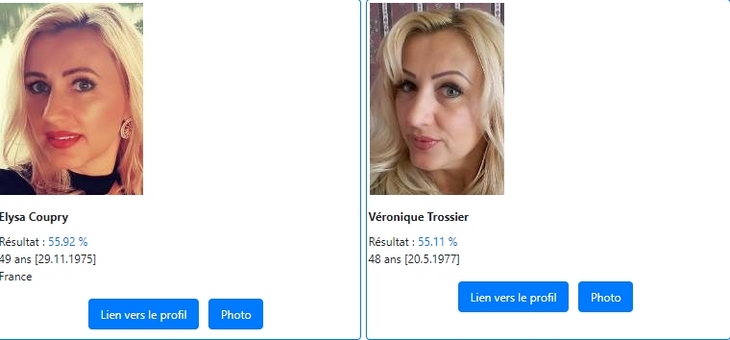 Search4faces est un moteur de recherche de visage inversé qui peut vous aider à trouver des photos d’une personne sur tout le Web. Nous utilisons la reconnaissance faciale, l’intelligence artificielle et l’apprentissage automatique pour effectuer une recherche d’image inversée. Vous pouvez trouver la bonne personne ou quelqu’un de très similaire à lui en quelques secondes. Le résultat est un lien vers le profil de la personne trouvée dans le réseau social vk.com, ok.ru et autres.À l’heure actuelle, 4 bases de données ont été partiellement ou totalement collectées : les avatars du réseau social Vkontakte et les photos principales du réseau social Odnoklassniki, les photos de profil du réseau social Vkontakte, les avatars des utilisateurs de Tiktok, les avatars des utilisateurs de ClubHouse.Vous pouvez effectuer la recherche de la base de données correspondante en utilisant les liens ci-dessous. Si la personne que vous recherchez n’est pas trouvée en effectuant une recherche dans l’une des bases de données, nous vous recommandons d’utiliser la recherche dans les quatre autres.